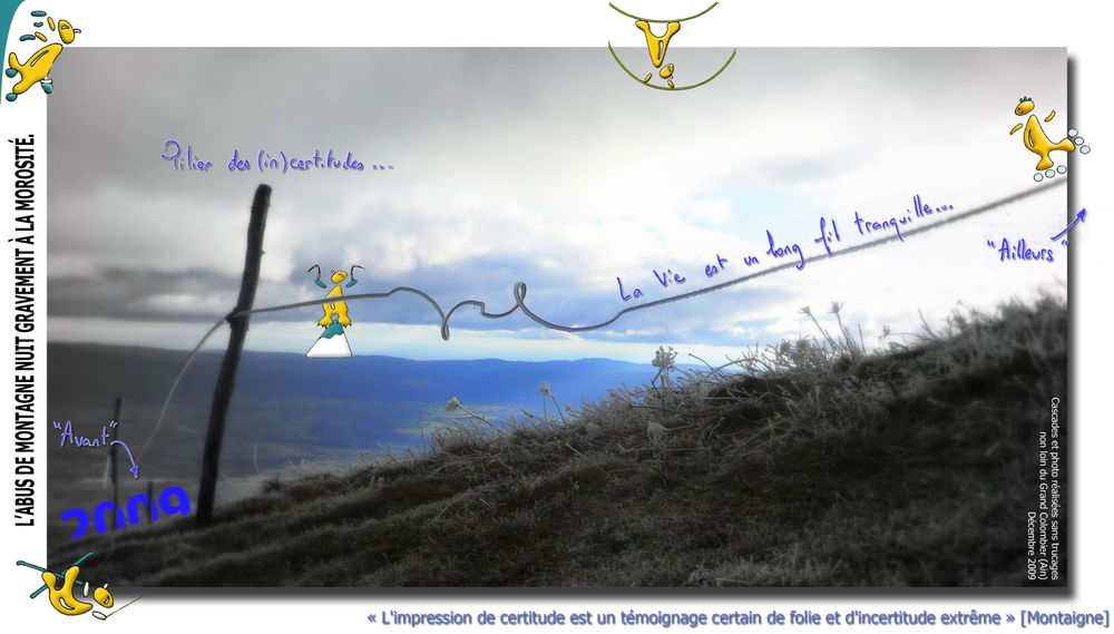 ainsi que les énigmes sur la montagne où l'on planquait les bouquins chroniquées dans la nature et l'on proposait des énigmes sur le site dédié pour aller les trouver... (désolé la mise en forme du site n'a pas été capturé par la wayback machine).